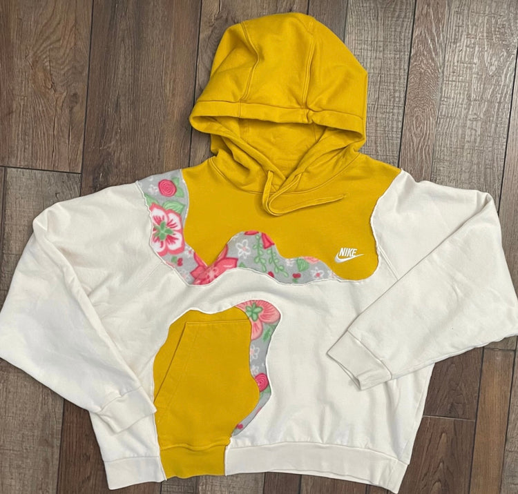 A collection of comfortable and stylish hoodies, sweatshirts, and sweaters that have been reworked from secondhand clothing and other materials!