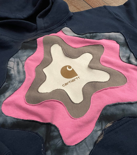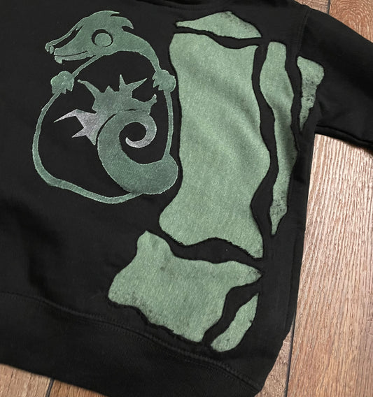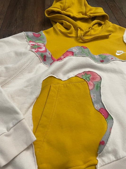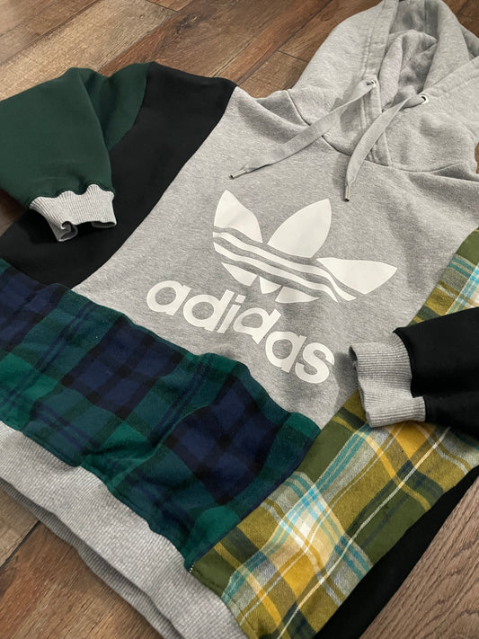 A collection of comfortable and stylish hoodies, sweatshirts, and sweaters that have been reworked from secondhand clothing and other materials!