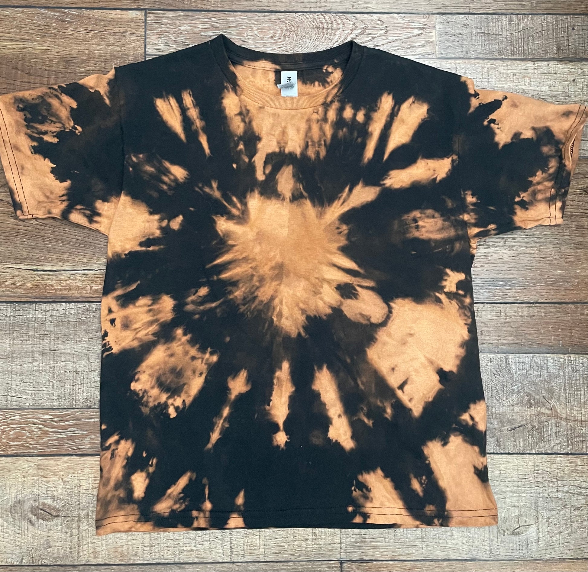 A Gildan heavyweight cotton T-shirt that has been hand died and bleached!