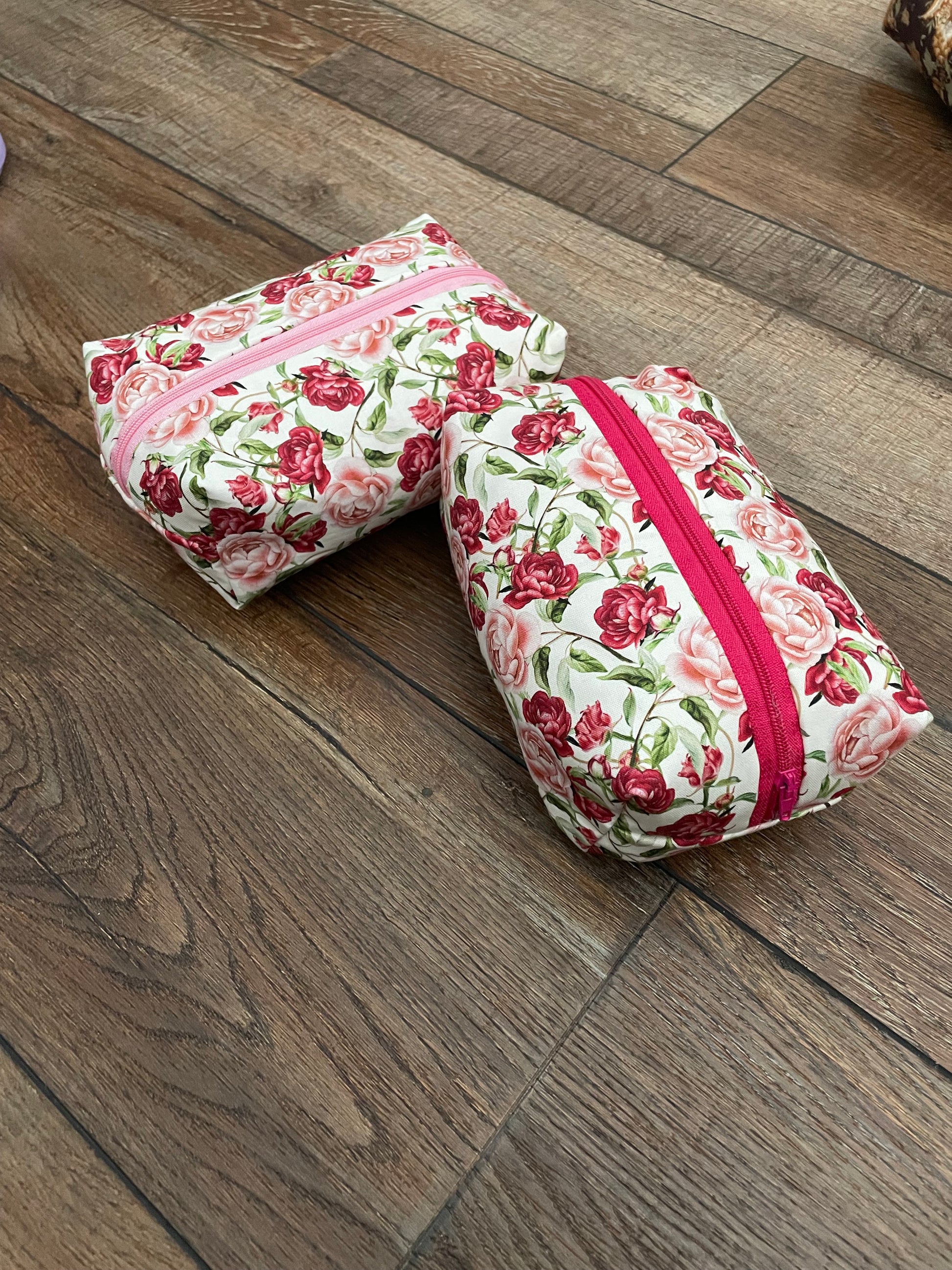 Hand sewn zipper pouches in a variety of floral prints!
